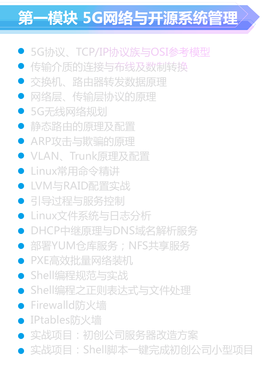 | · 云计算工程师 | · 5G网络运维工程师 | · 云架构师 |