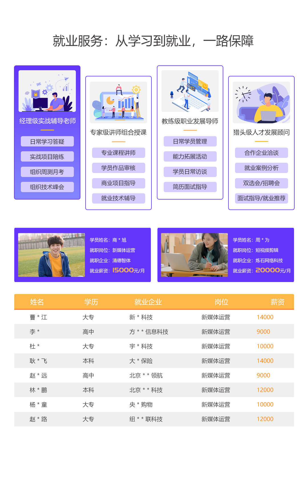 3个模块;27个章节;150+技能点;20+新媒体营销方法